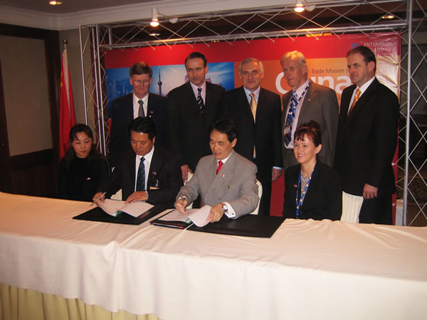 2005年1月21日沈陽青年國際旅行社有限公司董事長倪琛善與愛爾蘭UCD大學領導余曉晴簽定旅游及培訓協議。