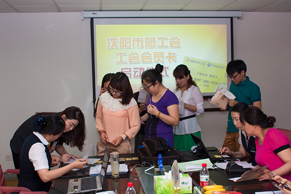2015年6月1日,沈陽市總工會會員服務(wù)卡領(lǐng)卡啟動儀式在沈陽青年國際旅行社舉行。沈陽青旅員工積極辦理會員服務(wù)卡,現(xiàn)場氣氛嚴肅而又不失愉快。