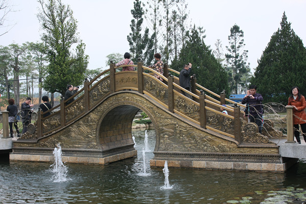 同源橋,朱炳仁創(chuàng)作溝通兩岸第一金橋。由朱炳仁設計創(chuàng)意的“同源橋”,因海峽兩岸“同出一源”得名。此橋用10噸銅鑄成,橋長近10米,寬2米。