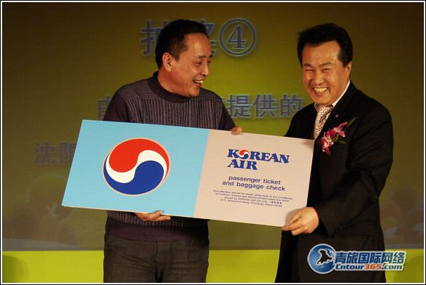 韓國觀光公社向沈陽青旅頒發感謝牌,沈陽青旅董事長倪琛善先生上臺領獎