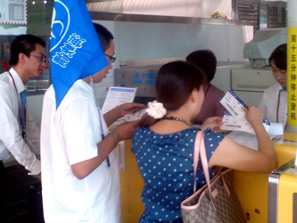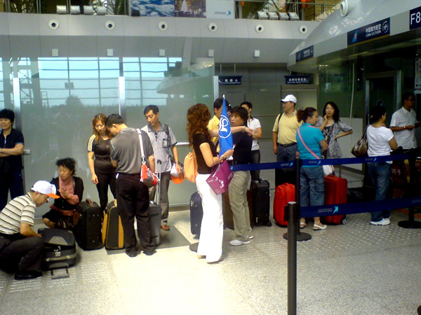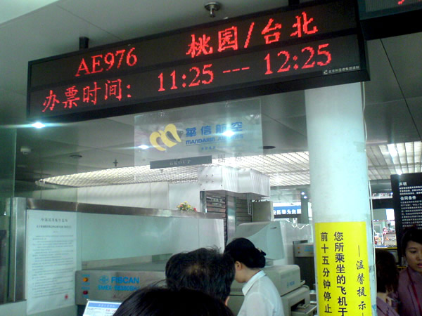 沈陽青旅“海峽情”臺(tái)灣旅游團(tuán)正在辦理登機(jī)手續(xù)