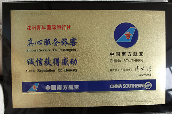 沈陽青旅榮獲中國南方航空公司“全球金牌合作伙伴”殊榮