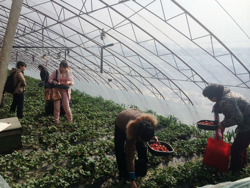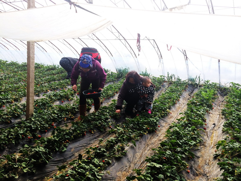 3月8日活動當天報名火爆,搶到名額的游客們懷著激動無比的心情踏上旅途。 在溫室草莓大棚,大家盡情享受親近自然、自己動手采摘的樂趣。 一家老小齊出動,每個人都收獲頗豐。
