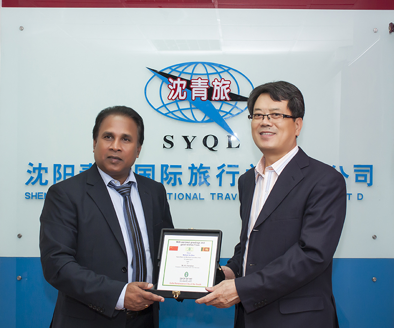 2015年5月20日,斯里蘭卡共和國高爾市市長Methsiri De Silva先生一行在沈陽市對外友好協會副秘書長王子江先生的陪同下對沈陽青年國際旅行社有限公司進行旅游交流訪問,沈陽青旅董事長倪琛善先生、張新宇總經理女士出席了會議,雙方就沈高兩市旅游發展進行了深入討論。