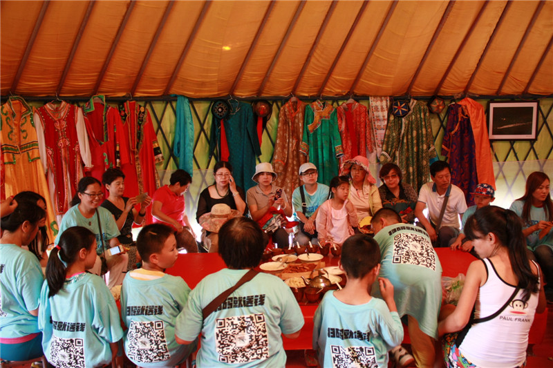 活動(dòng)的最后一天,大家赴西拉木倫公園活動(dòng),又去科爾沁博物館參觀了《科爾沁歷史珍寶》《科爾沁歷史長卷》《蒙古族文物精品》《遼陳國公主與駙馬墓文物展》《官布藝術(shù)館》《劉寶平美術(shù)館》等基本基本陳列展覽。一部厚重的科爾沁歷史、一段精彩而又難忘的行程,讓大家在評(píng)優(yōu)秀營員舉行閉營頒獎(jiǎng)儀式后,還難忘的在條幅上簽字、合影留念,依依不舍中大家返回了沈陽。這次精彩的夏令營,猶如一支悠長的蒙古長調(diào),讓每一個(gè)參與其中的朋友都對(duì)這片草原留下了美好的回憶!